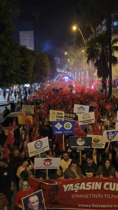 Adana Büyükşehir Belediyesi ve ilçe belediyelerince gerçekleştirilen 29 Ekim Cumhuriyet Bayramı kutlamaları muhteşem görüntülere sahne oldu. Cumhuriyetin 102. Kuruluş Yıldönümü Kutlamalarında on binlerce Adanalı, Adana Büyükşehir Belediyesi önünde toplandı ve saat 19:23’te Uğur Mumcu Meydanı’na doğru, ellerinde meşaleler ve pankartlarla yürüyüşe geçti.